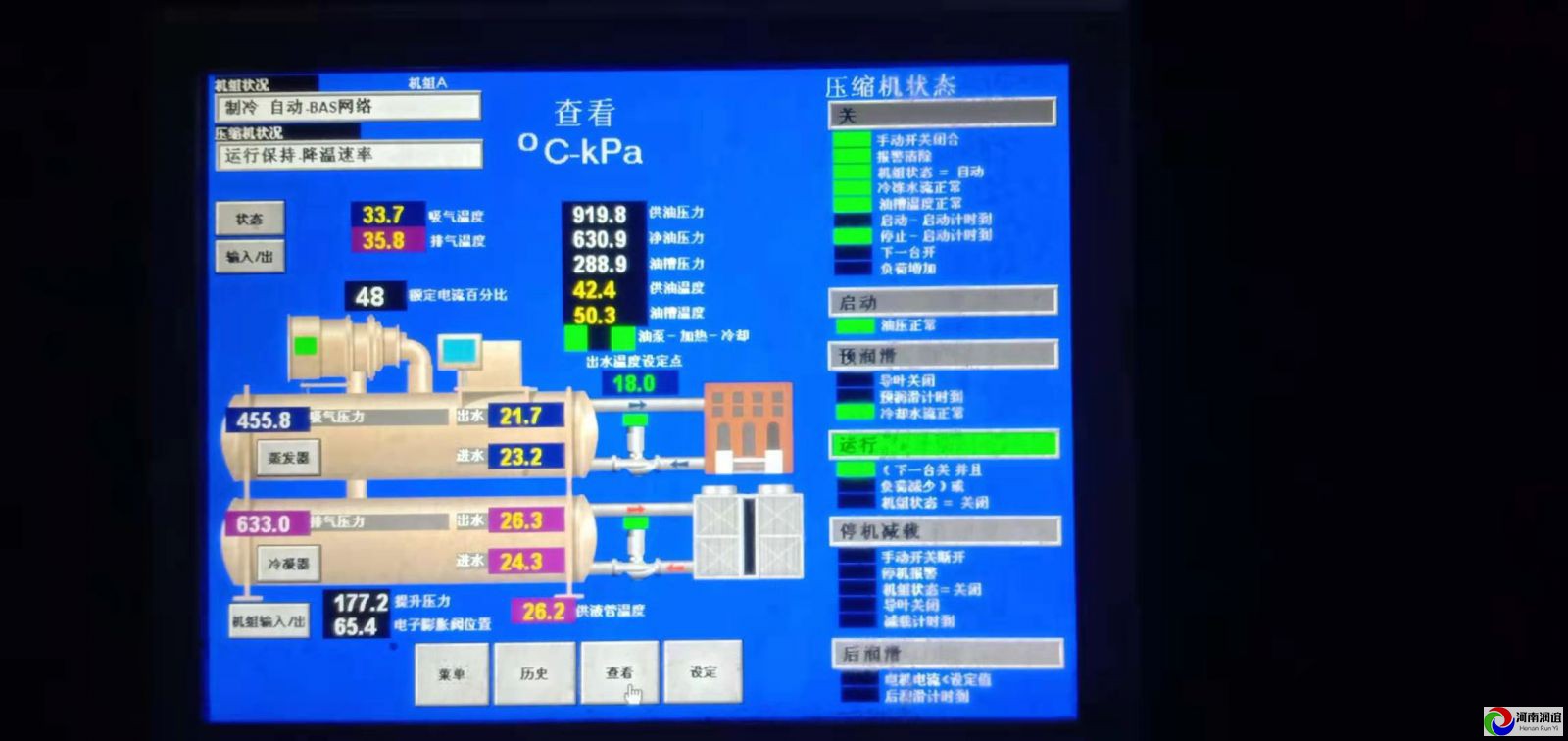 美的離心式中央空調(diào)機組啟動前檢查 按下列項目進(jìn)行制冷機啟動前的操作確認(rèn): (1)油箱內(nèi)油位正確最高油位視液鏡中部附近。 (2)油溫正確機組初次安裝投運前或機組長期斷電、